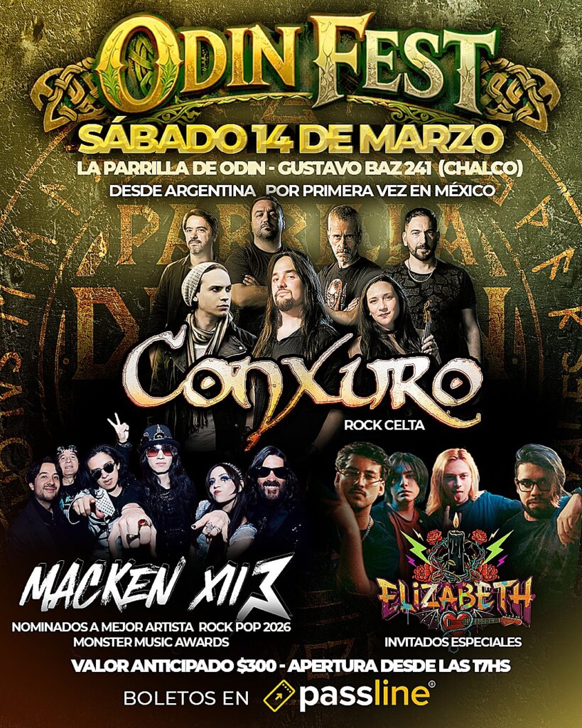 La escena del rock celta en México vivirá una jornada significativa este sábado 14 de marzo con la llegada, por primera vez al país, de Conxuro, agrupación argentina que ha consolidado una identidad poderosa dentro del género gracias a una combinación electrizante de bases de rock con melodías celtas protagonizadas por violín y flauta. Su presentación se dará en el marco del Odin Fest, un encuentro que apuesta por descentralizar la oferta cultural y llevar espectáculos internacionales de calidad al oriente del Valle de México. El evento se realizará en La Parrilla de Odín, ubicada en Gustavo Baz No. 241, en Chalco Centro, y dará inicio a las 17:00 horas. Los boletos se encuentran disponibles a través del sistema Passline y también pueden adquirirse directamente en el recinto en horario vespertino.