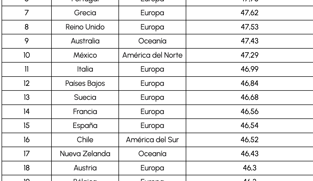 El top 10 lo cierra México, que destaca por su calidez y por una hospitalidad muy arraigada. Algo más abajo, dentro de los veinte primeros, aparece España, impulsada por la disposición natural a echar una mano en el entorno más cercano, y también Chile, donde la solidaridad del día a día y la importancia de la vida familiar siguen siendo rasgos clave.