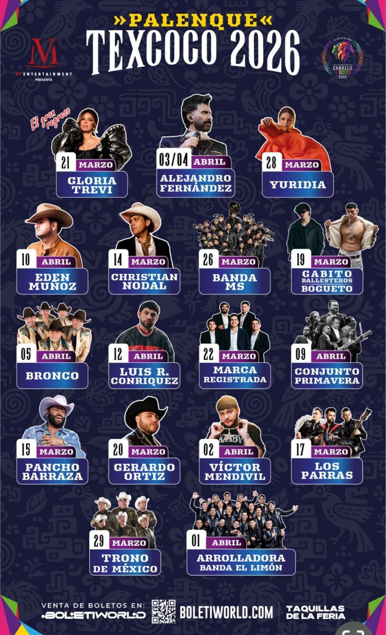 La Feria Internacional del Caballo Texcoco 2026 está cada vez más cerca y promete consolidarse, una vez más, como uno de los eventos culturales y musicales más importantes de México. Con una cartelera que combina talento nacional e internacional, la feria ofrecerá espectáculos para todos los gustos tanto en el Teatro del Pueblo como en el tradicional Palenque.